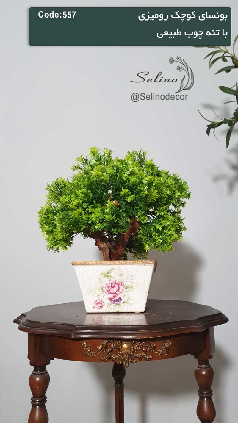 انواع بونسای یا همان بنسای مصنوعی و گلدانهای مصنوعی کوجک که با ظرافت زیادی تولید شده و برای روی میز، شلف، بوفه یا میز کنار مبلی ایدهآل هستند. بن سای های خاص با تنه چوب طبیعی