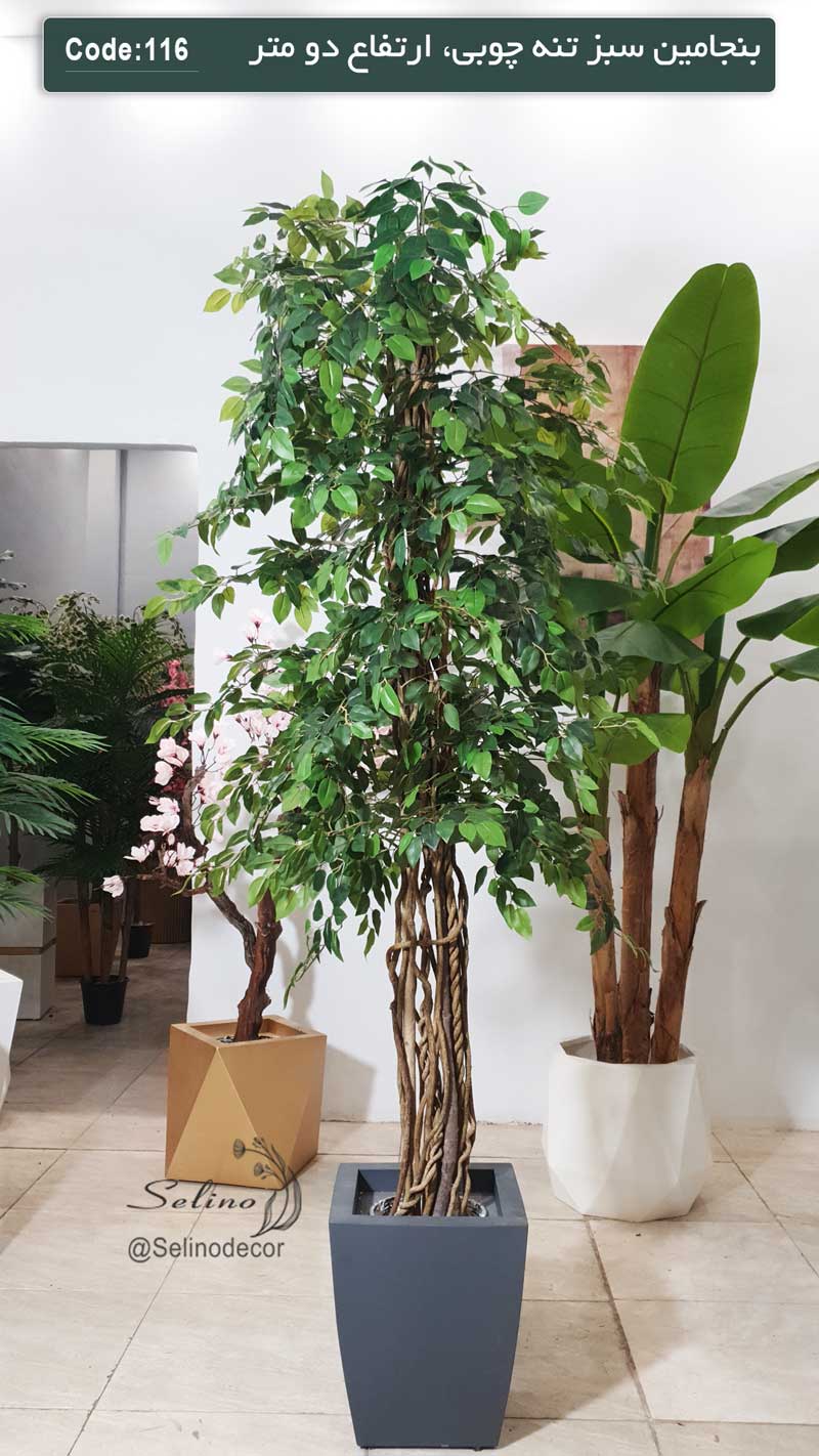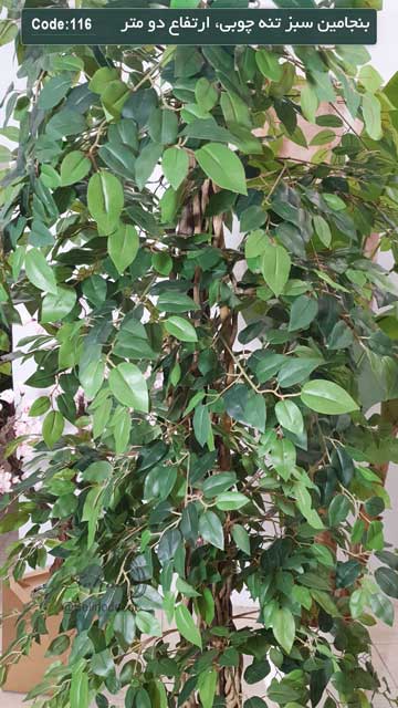 تنه از جنس چوب طبیعی میباشد که برگهای بنجامین وارداتی با کیفیت به آن متصل شده است.