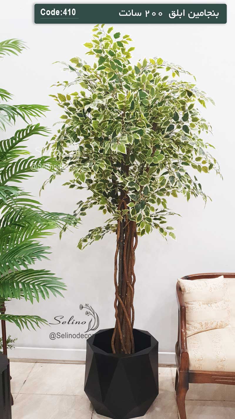 تنه از جنس چوب طبیعی میباشد که برگهای بنجامین وارداتی با کیفیت به آن متصل شده است.
