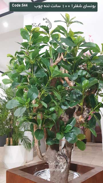 تنه بونسای از جنس چوب طبیعی میباشد که بر روی آن برگهاش شفلرای وارداتی نصب شده است.
