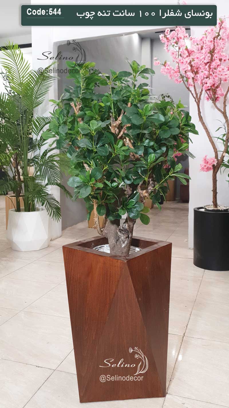 بونسای شفلرا سبز مصنوعی 100 سانت با تنه چوبی