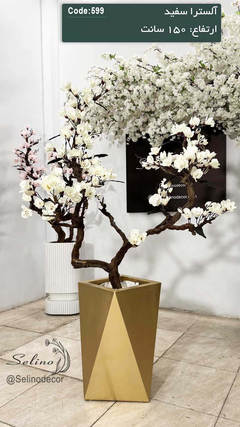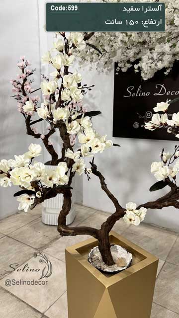 درختچه مصنوعی آلسترا سفید 150سانت با تنه چوب خاص